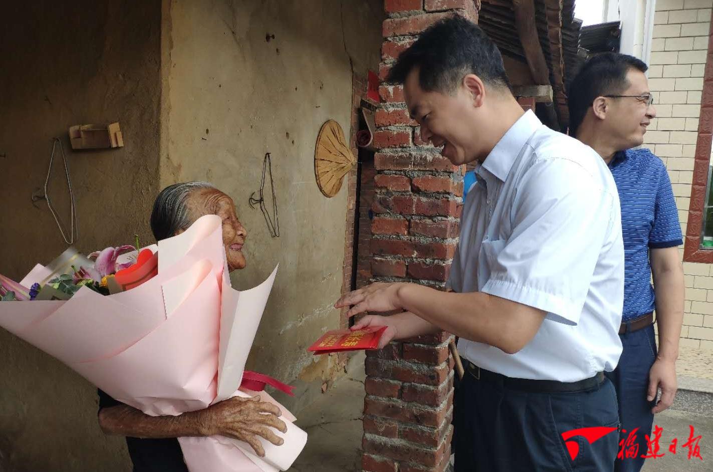福建日报APP-新福建10月23日讯 (通讯员 温欣 张卫文 赖定军)在重阳节来临之际,为弘扬中华民族的优良传统,营造浓厚的孝老、爱老、敬老氛围。10月22日,南靖县委书记黄劲武、县长钟科携县政府办、县民政局有关人员深入丰田、书洋、金山、龙山等11个乡镇慰问百岁老人,送上慰问金和美好节日祝福。