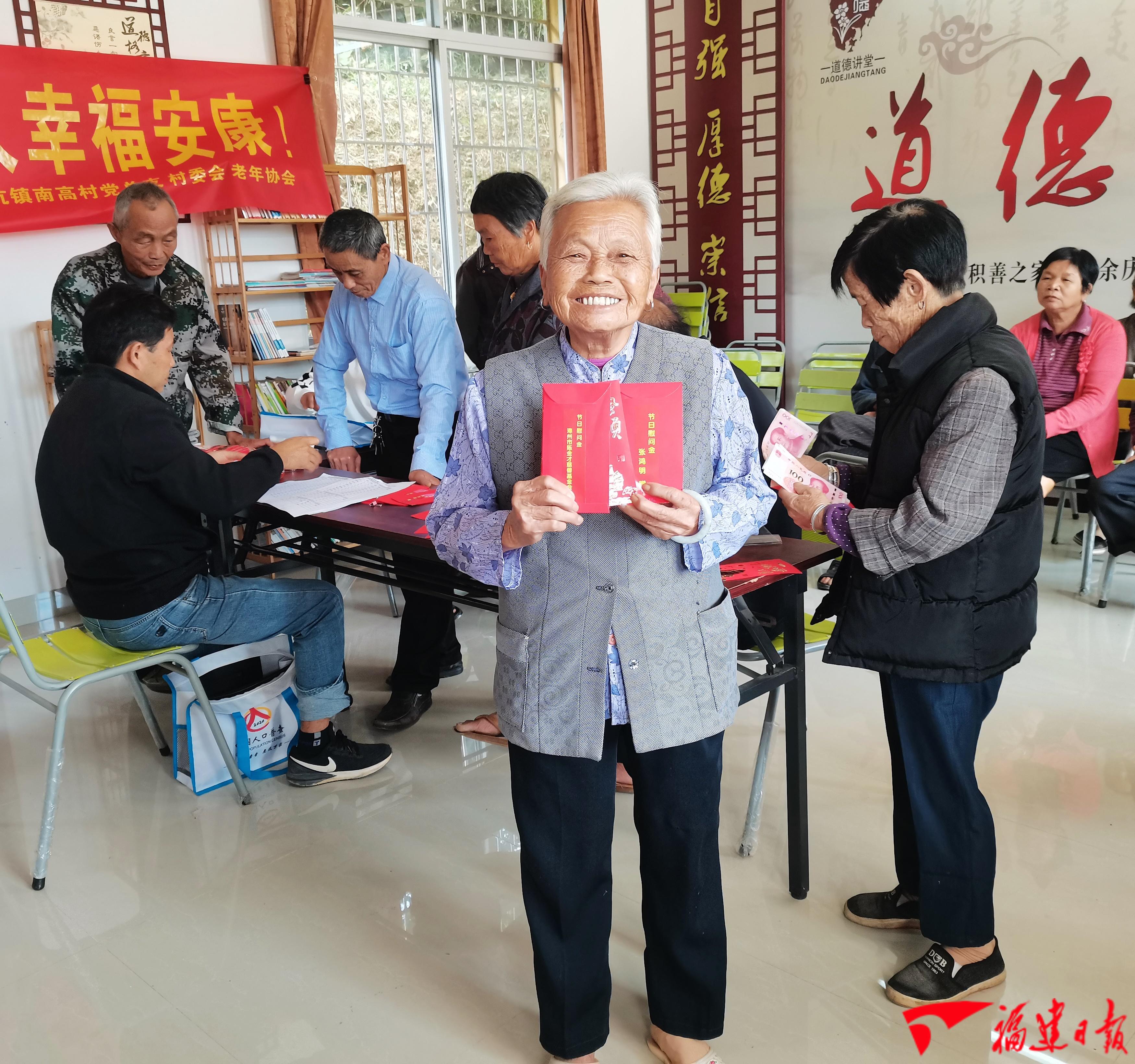 重阳前夕,漳州市陈金才慈善基金会和南靖县政协常委、漳州西陵陵园开发有限责任公司董事长张鸿明以及南坑镇新罗村企业家曾秋萍等企业家乐善好施,再次捐赠南高村助老款。