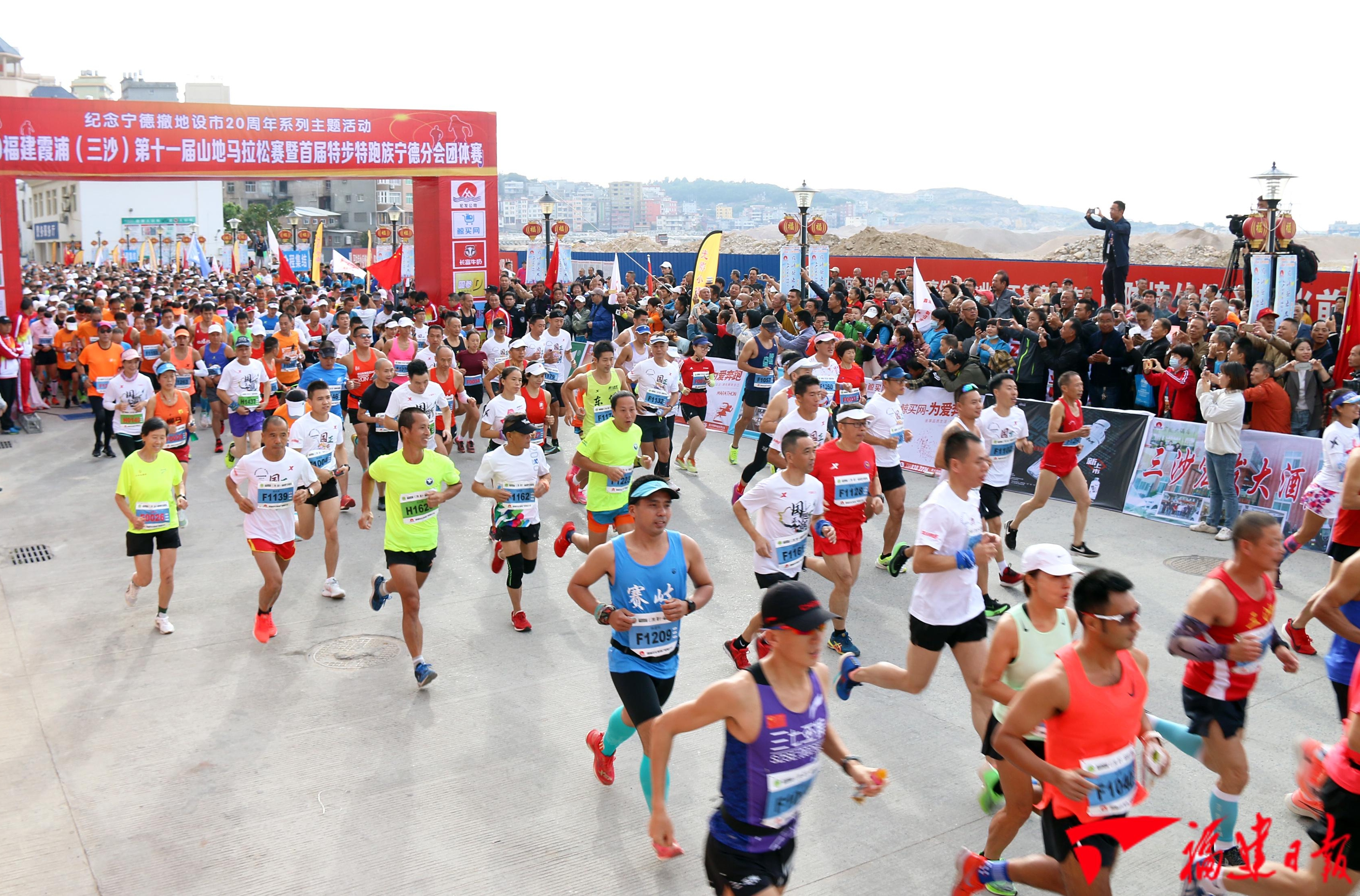 上午8时,随着一声枪鸣,身着颜色各异运动服的选手们冲出起点,沿着三沙海边崎岖的山路奔跑,时而奋力爬坡、时而缓步而下,在场观众纷纷为其加油助威。经过激烈紧张的角逐,福州选手肖祖锋以2小时54分52秒的成绩获得男子全程马拉松的冠军,泉州选手蔡文华以3小时27分50秒的成绩获得女子全程马拉松冠军。来自漳州的李政跃夺得男子半程马拉松冠军,来自厦门的殷晓雨荣获女子半程马拉松冠军。