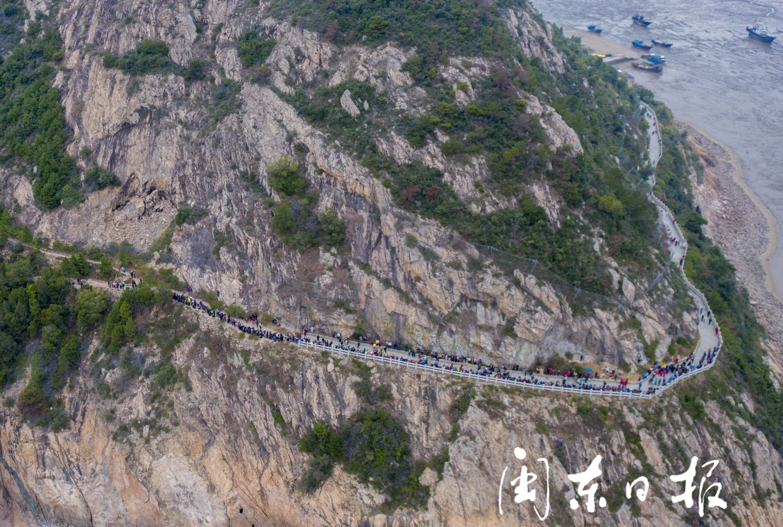 11月3日,在霞浦县松山街道北岐日出拍摄点,来自全国各地的游客纷至沓来,把3公里长的盘山步道站的满满当当。