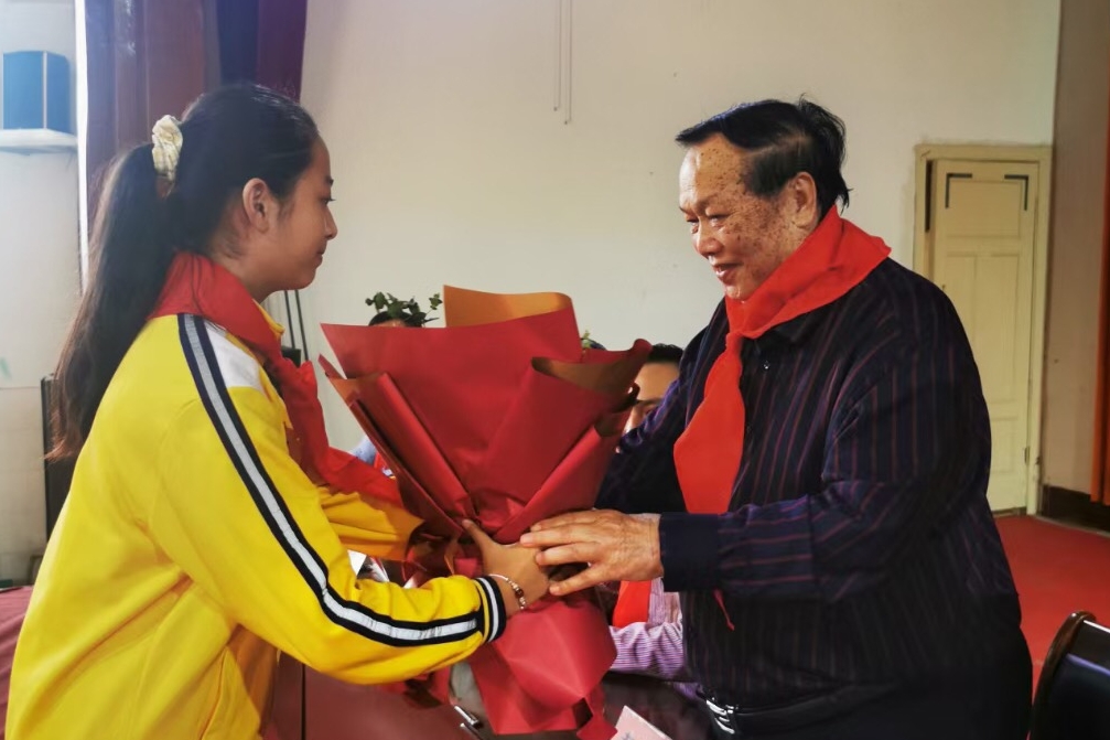 据悉,石庭中心小学是一所百年老校,也是黄春水的母校。出生贫苦农民家庭的黄春水,几十年来艰辛创业,使公司从一个小厂发展到资产超亿元的福祥集团。多年来,黄春水一直热心慈善公益事业,支持家乡教育事业发展。2014年起,他在石庭中心小学设立“黄春水奖学金”,每年提供10万元,十年共计100万元。目前,黄春水奖学金至今已经连续发放了7年,累计资助了2100名同学。当天,85岁的黄春水也回到母校,参与奖学金颁发仪式。