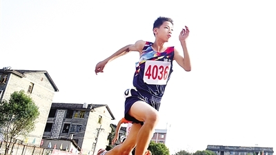 浦城选手在比赛中冲刺。 (黄杰敏 摄)