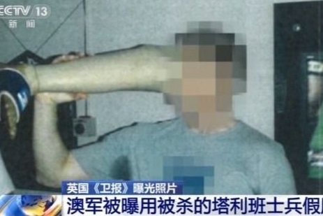12月1日,英国《卫报》又曝光了一张照片:报道说,2009年,一名澳大利亚特种部队高级士兵在阿富汗一家酒吧里,用被杀死的塔利班士兵的假肢喝啤酒。报道称另外一张照片中,两名士兵用十分夸张的姿势与假肢合影。一些士兵表示,用假肢喝酒的做法得到了上级的容忍和接受,有些军官也参与其中。
