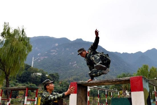 图为官兵正在通过四百米障碍考核。 吴亮超 摄