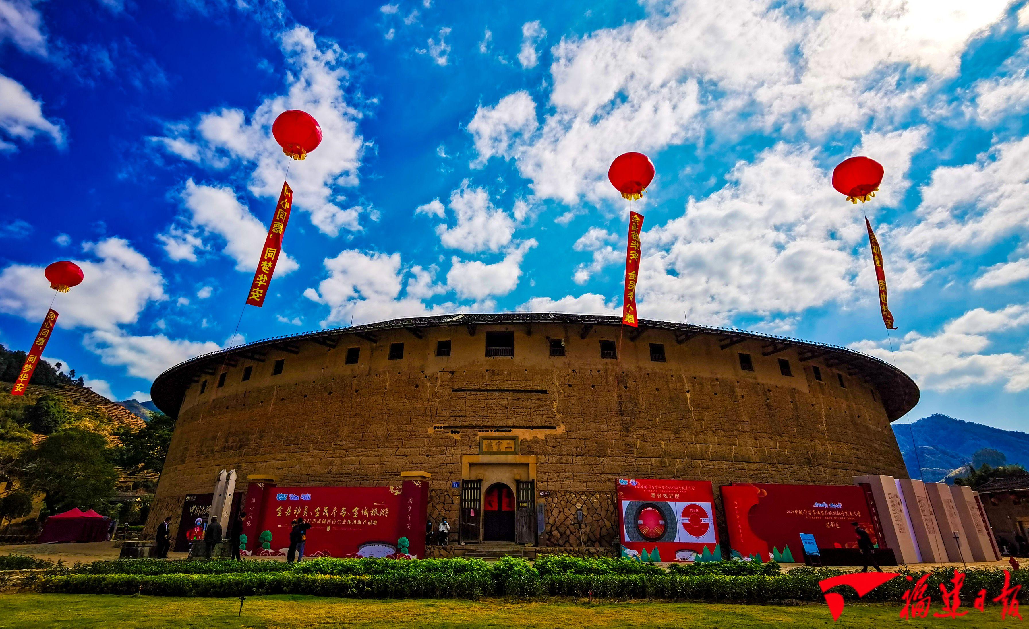 福建日报APP-新福建12月3日讯(通讯员 黄建和 陈秀妹 记者 李妙珠)九龙江畔逢盛事,二宜楼前迎客来。12月3日,2020中国·华安全域生态旅游融合发展大会暨“全福游嘉年华——世遗大地土楼文化旅游周”系列活动在世界文化遗产福建(华安)土楼所在地漳州市华安县仙都镇大地土楼群二宜楼开幕。
