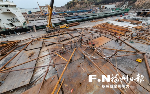“这是我们自主研发的深远海养殖利器,今年初就开始构思设计,10月动工建造,计划在春节前投入使用。”看着一个个构件在眼前加速组合,从事造船业30余年的福建鑫丰船业公司董事长卢统锋仍难掩兴奋,“从审图、进厂材料及设备、建造质量监控整个过程都由中国船级社认证。”