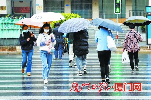 昨日鹭岛小雨淅沥、气温下降,市民纷纷换上厚外套,打伞出行。(本报记者吴尔婷摄)