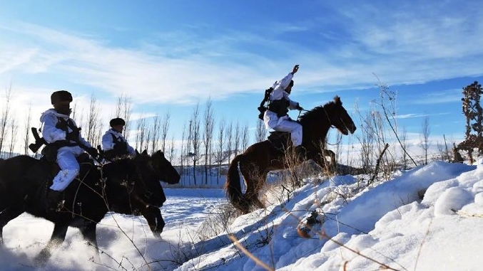 为有效提升官兵骑乘水平和军马作战能力,新疆塔城军分区某边防团军马教练员和他们亲密的“战友”,迎来了冬季集训,骑兵队列、军马障碍……野外骑乘、乘马射击……一个个课目相继展开。骑军马的边防官兵,真帅!