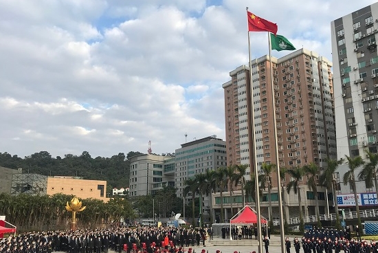 12月20日上午,澳门特区政府在金莲花广场举行了隆重的升旗仪式,庆祝澳门回归祖国21周年。澳门特区政府、中央驻澳机构和社会各界代表等约510人,以及众多市民和游客来到金莲花广场共同观礼,庆祝回归纪念日。