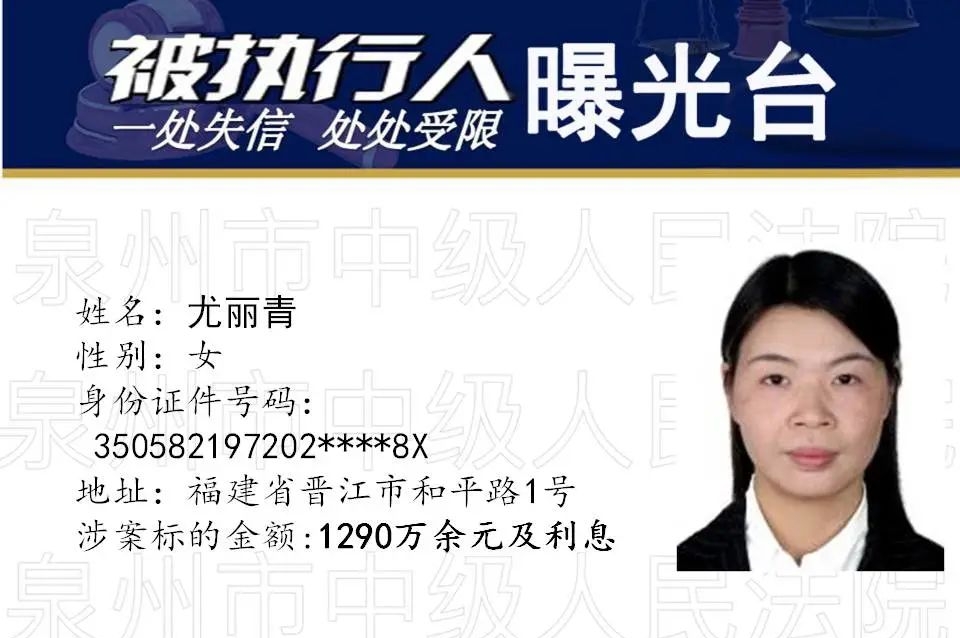 据最高人民法院《关于公布失信被执行人名单信息的若干规定》,安溪法院本周继续公布一批失信被执行人名单,欢迎社会各界举报监督。