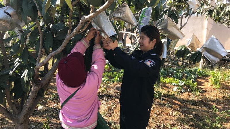 30日一大早,黄佳冰、王淑娟、刘秀金三名网格员赶到余金烟家的枇杷果园,帮助其用稻草覆盖枇杷树干及下方土壤,并为枇杷花果套上防护袋,防止霜冻影响枇杷生长。通过几人大半天的努力,余金烟家的20多棵枇杷树全部套上了防护袋。“每年冬天我们都担心天气寒冷把枇杷冻坏了,幸好今年有网格员过来帮忙,要不然真不知道要忙到什么时候。”余金烟说。