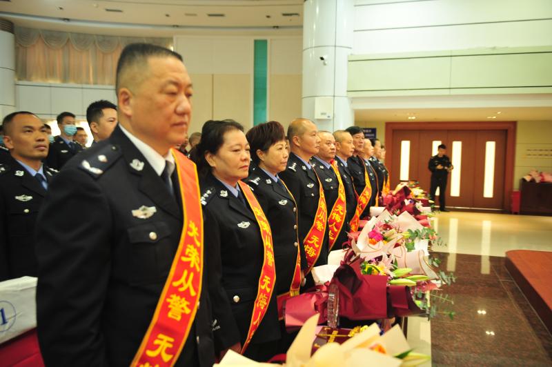 当卢良川政委细心地为荣退民警职工整理绶带的时候;