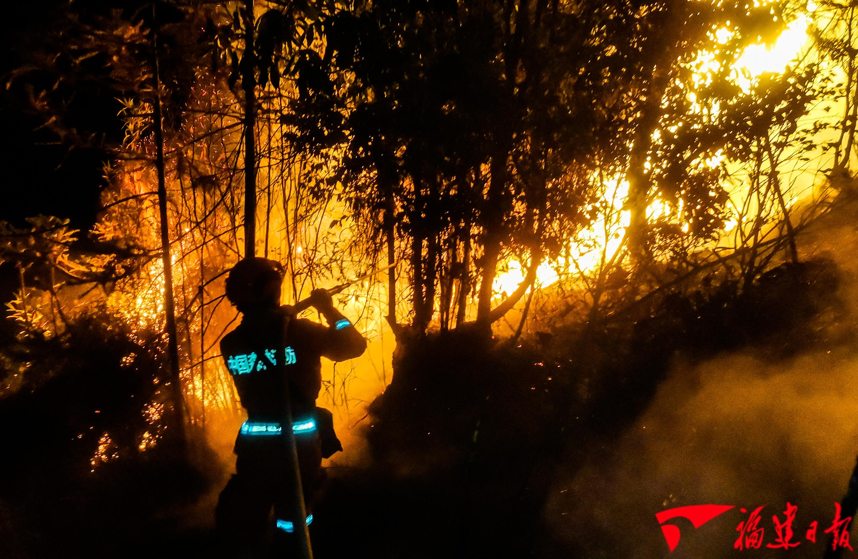 据介绍,经现场无人机勘查,火情发生地山势陡峭,火线呈南北走向燃烧,火势较大,借着风势,让黑夜火光冲天,危及附近村庄安全。福建龙岩市森林消防支队接警后,第一时间就近派出龙岩大队前往扑救,同时调集所属漳州大队、厦门驻防分队立即向火场机动集结。