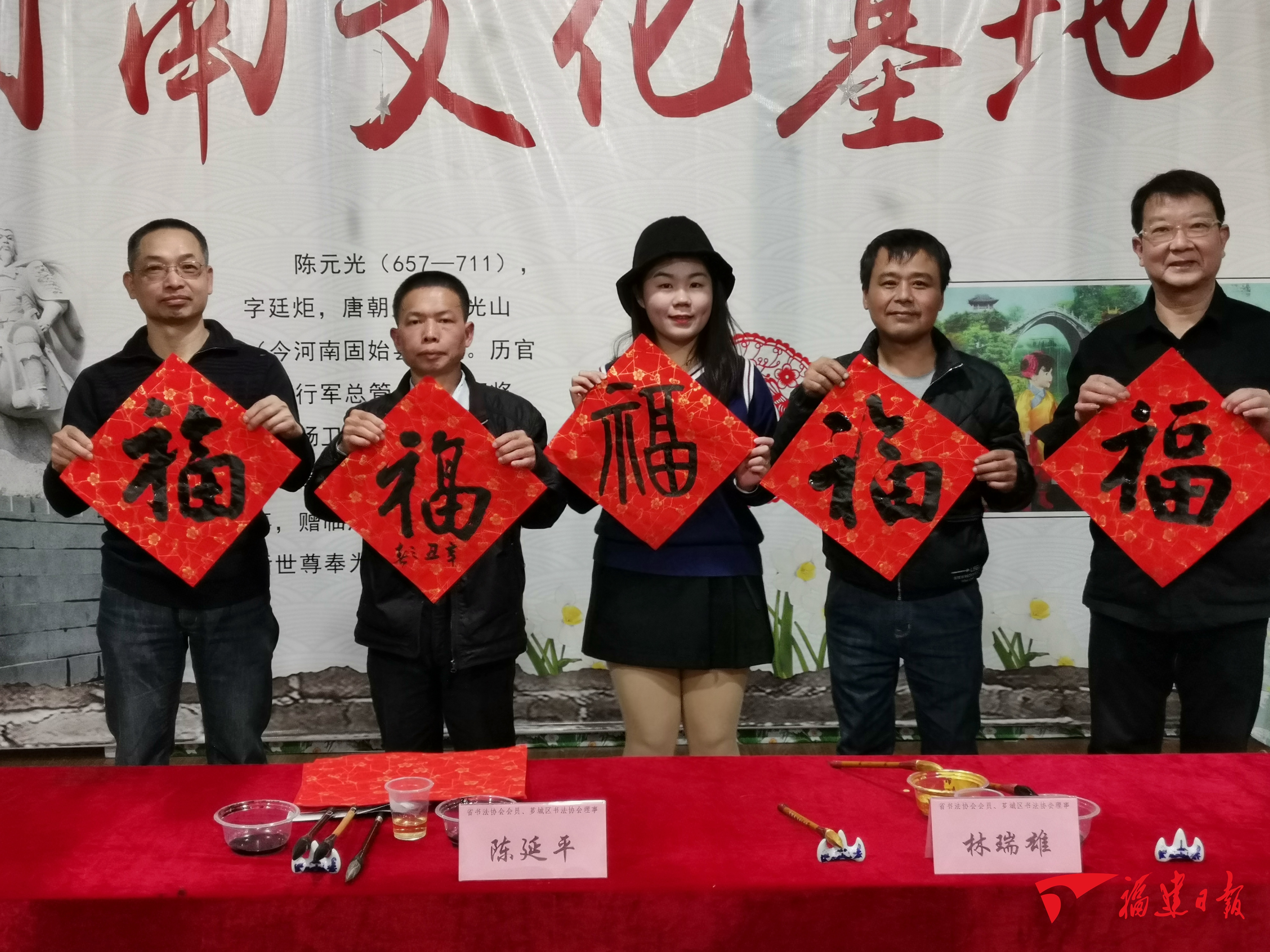 为给即将到来的新春佳节增添了浓厚的节日氛围,1月31日,漳州市新华书店在闽南文化基地举办“翰墨飘香,迎春送福”活动,邀请省书法协会兼芗城区书法协会理事陈延平、林瑞雄等5位书法家给读者写春联,送福字。