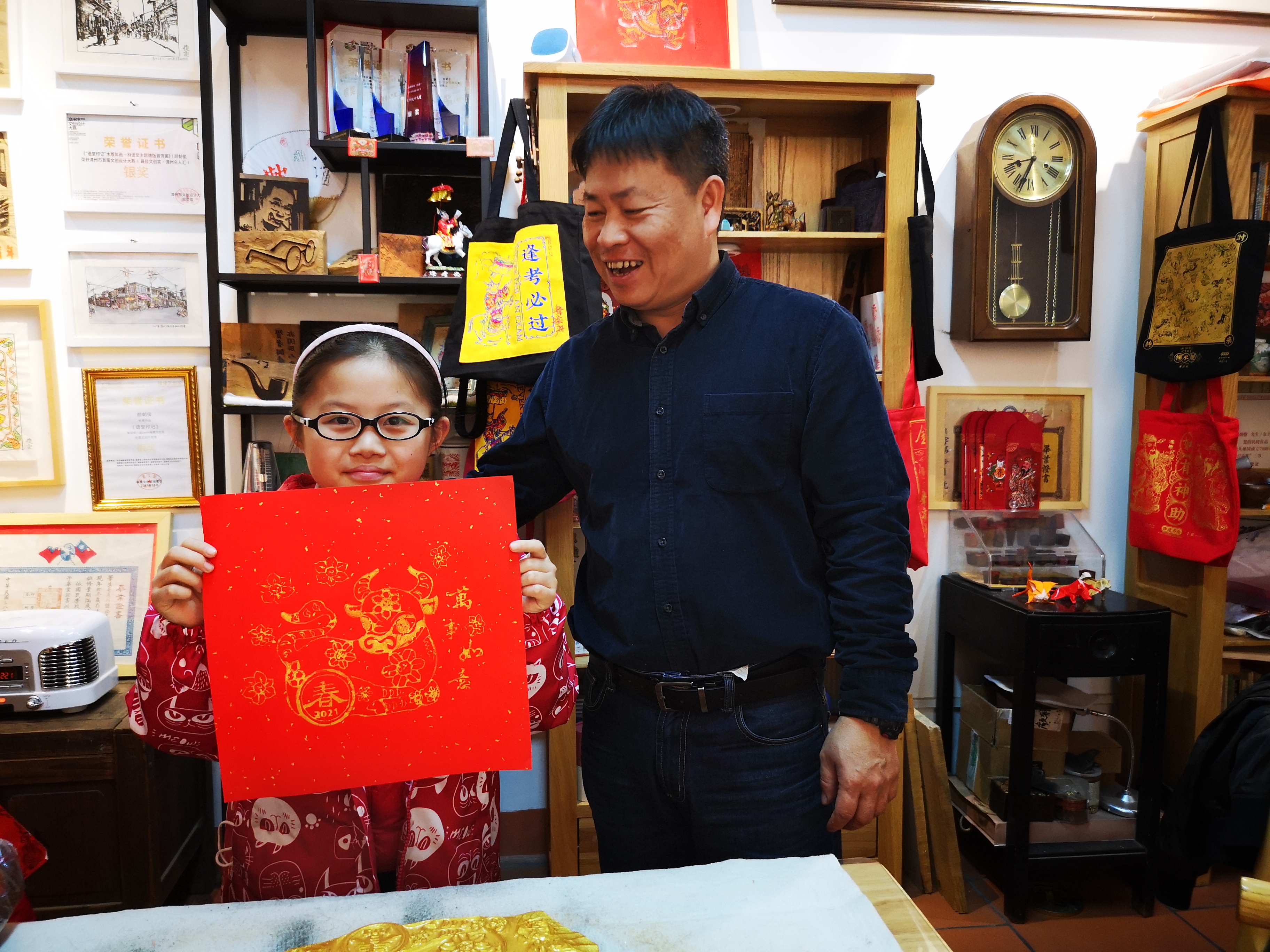 此次牛年来临之际,他还专门刻印了最新的牛年年画木版,让大家可以尽情拓印年画。