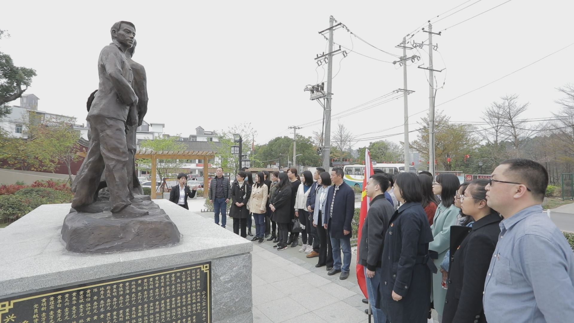 图为我局组织党员干部参观绍岐横江渡口革命先驱雕塑
