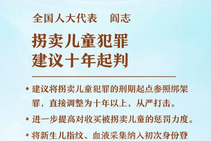 ①建议将拐卖儿童犯罪的刑期起点参照绑架罪,直接调整为十年以上,从严打击;