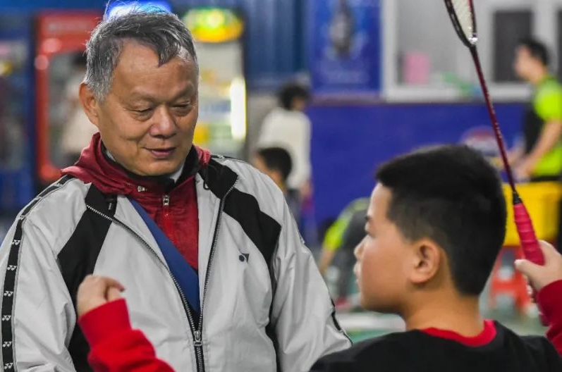 作为俱乐部的技术总顾问,游佐荣平时不带“娃娃兵”,但看到部分孩子的动作不规范,他会上前纠正。在球馆内,记者看到,他一边示范一边耐心地讲解:“我们不要直线推火车,你看,绳子动起来会有起伏,那动作就对了。”听着游佐荣细致的讲解,孩子很快明白了动作要点,按照他说的动作规范模拟了几次,然后迅速投入训练。