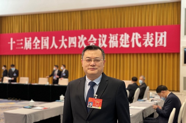 全国人大代表、厦门大学校长张荣在十三届全国人大四次会议上。受访者供图