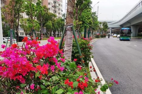 9日上午,记者来到火车站北广场看到,北广场前三环立交桥下绿化已完成补植工作,增种不少灌木、绿树等植被,沿线搭配三角梅。在火车站两侧也进行绿化升级改造,以丰富季相、疏密有致、花化彩化为手段,提升火车站北广场及周边景观效果。