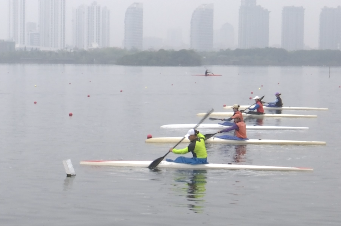 位于厦门市水上运动中心一侧的杏林湾水域,从去年冬季开始,福建皮划艇赛艇队就投入紧张的训练,全力备战陕西全运会。