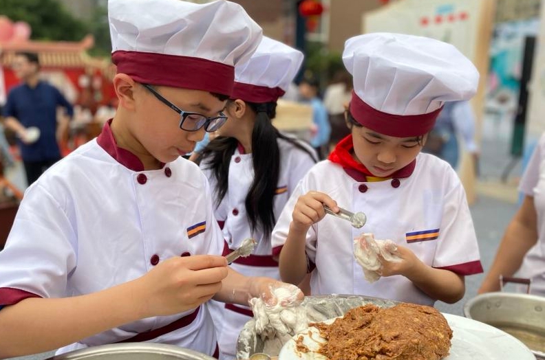 福州市洪山小学有近1400名学生,82%是进城务工人员随迁子女,家长从事各行各业,为家校共建提供了丰富的资源。让孩子为勤劳的父母骄傲,为自己能参与劳动自豪,学校将职业体验活动与传统文化传承、未来生涯发展、职业兴趣相结合,开展了各类劳动教育活动,比如请进非遗传人进校教授做鱼丸、学磨咖啡、辨别福州本地青草药等等。这次展示正是通过“时尚非遗”“职业体验”“快乐劳动”“旋律唱响”四个板块的设计,在劳动实践、艺术展演中,让学生体验不同职业的魅力,感受“工匠精神”的内涵。