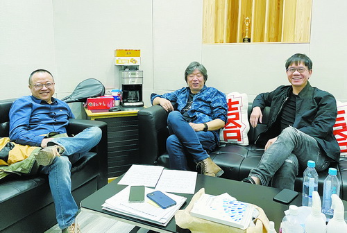 31年前厦大十大歌手之一海仔(右),写歌为母校庆生,与老狼(中)、卢中强(左)共同献唱。(受访者供图)