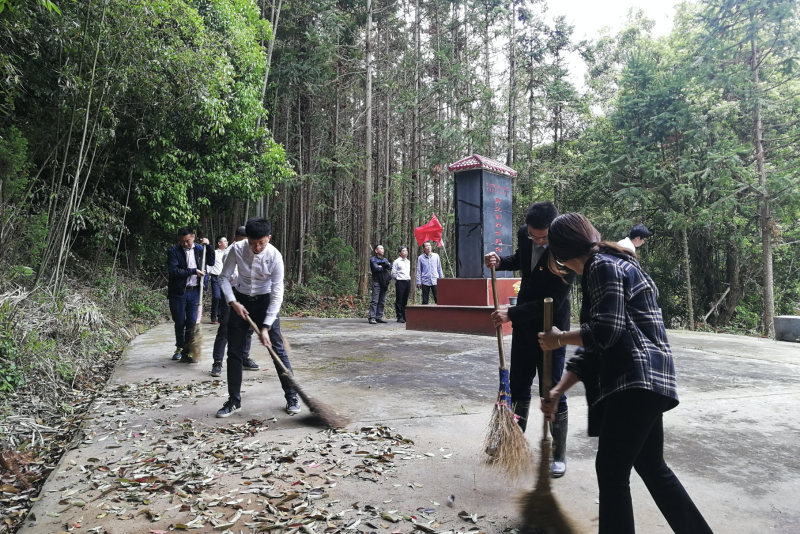 抵达纪念碑后,党员们带着对革命先烈的敬仰,满含深情地拿起布巾轻轻擦去纪念碑上的尘土,用扫把除去周围的树叶、杂草,满怀着敬意向革命烈士献上鲜花,寄托自己无限哀思和由衷敬仰。