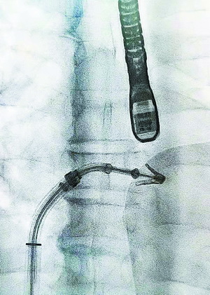 微创经股静脉送入夹合器。