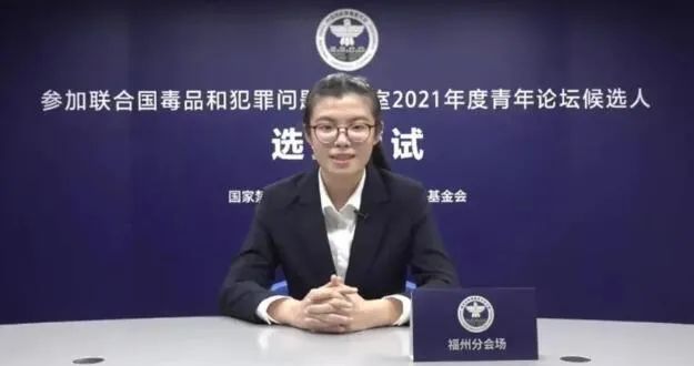 在线上面试环节中,蔡佳凝旁征博引,侃侃而谈,流利的中英文双语自我介绍、丰富的禁毒知识以及回答时的自信流畅,让她在众多面试者中脱颖而出,作为国家禁毒办推荐的四位代表之一参加该论坛。