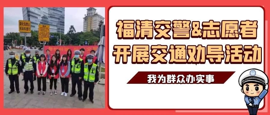 • 为进一步提高交通参与者的交通安全意识和遵法守规意识,认真落实“我为群众办实事”实践活动,福清公安交警大队联合福建技术师范学院大学生志愿者,助力福清创城工作,在辖区主要路口开展文明交通劝导活动。