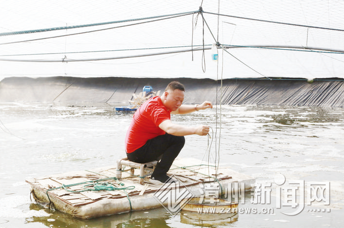 村民察看河鲀养殖情况
