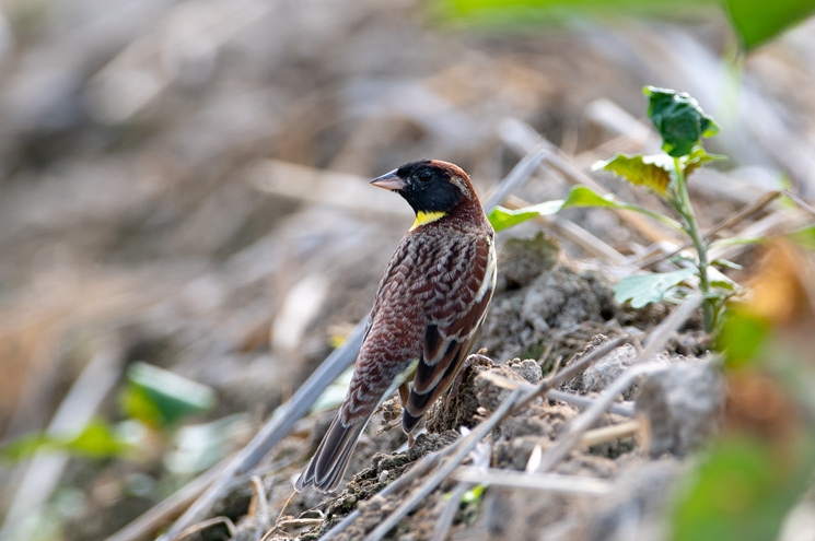 在地面觅食的雄性黄胸鹀。 陈浩摄