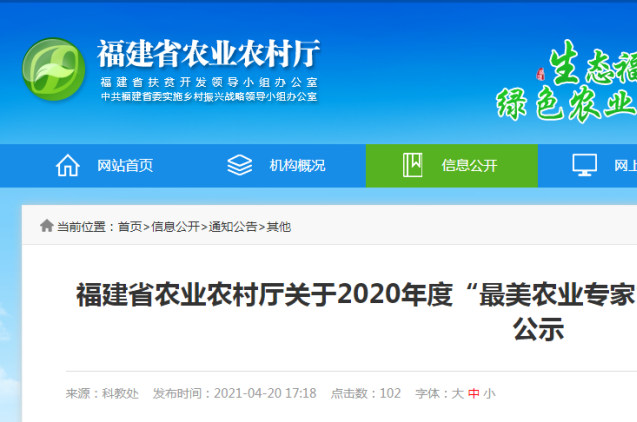 福建省农业农村厅关于2020年度“最美农业专家”和