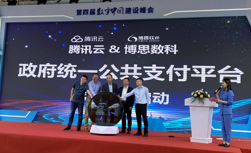 福建日报·新福建客户端4月26日讯(记者 段金柱 吴旭涛 文/图)4月26日上午,在第四届数字中国建设峰会上,腾讯云计算(北京)有限责任公司与福建博思数字科技有限公司,联合发布了“政府统一公共支付平台”。