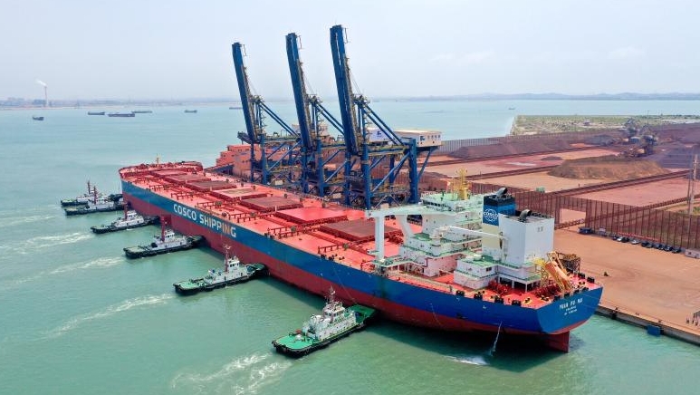 福建日报APP-新福建 5月26日讯(记者 林剑波 通讯员 黄汉业 谢乙景/文 陈琛/图)5月26日,福建港口集团罗屿港40万吨级码头建成投产,来自巴西并载有淡水河谷铁矿石的40万吨级矿石船“远福海”轮首靠罗屿港9号泊位并顺利作业,标志着罗屿港成为福建首个、我国第六个满足世界最大40万吨矿石船靠泊接卸的港口,也是宁波港以南唯一正式开港经营40万吨级泊位的港口。