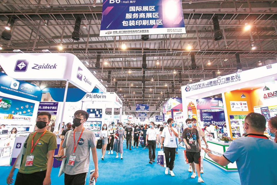 11日,首届“厦门国际跨境电商产业展览会”在厦门国际会展中心开幕(左图),活动将持续至13日。