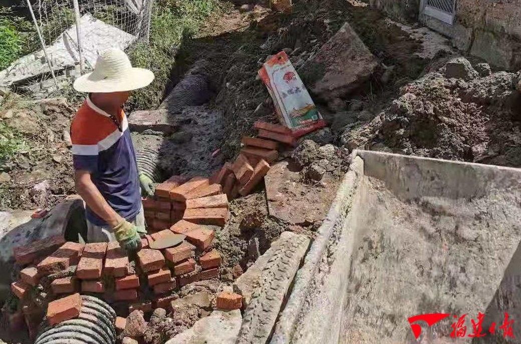 福建日报·新福建客户端6月21日讯(通讯员 吴皓)近日,在诏安县四都镇田美村顶寨施工现场,施工队员们有条不紊地砌砖、抹水泥、铺设污水管网,十分忙碌。