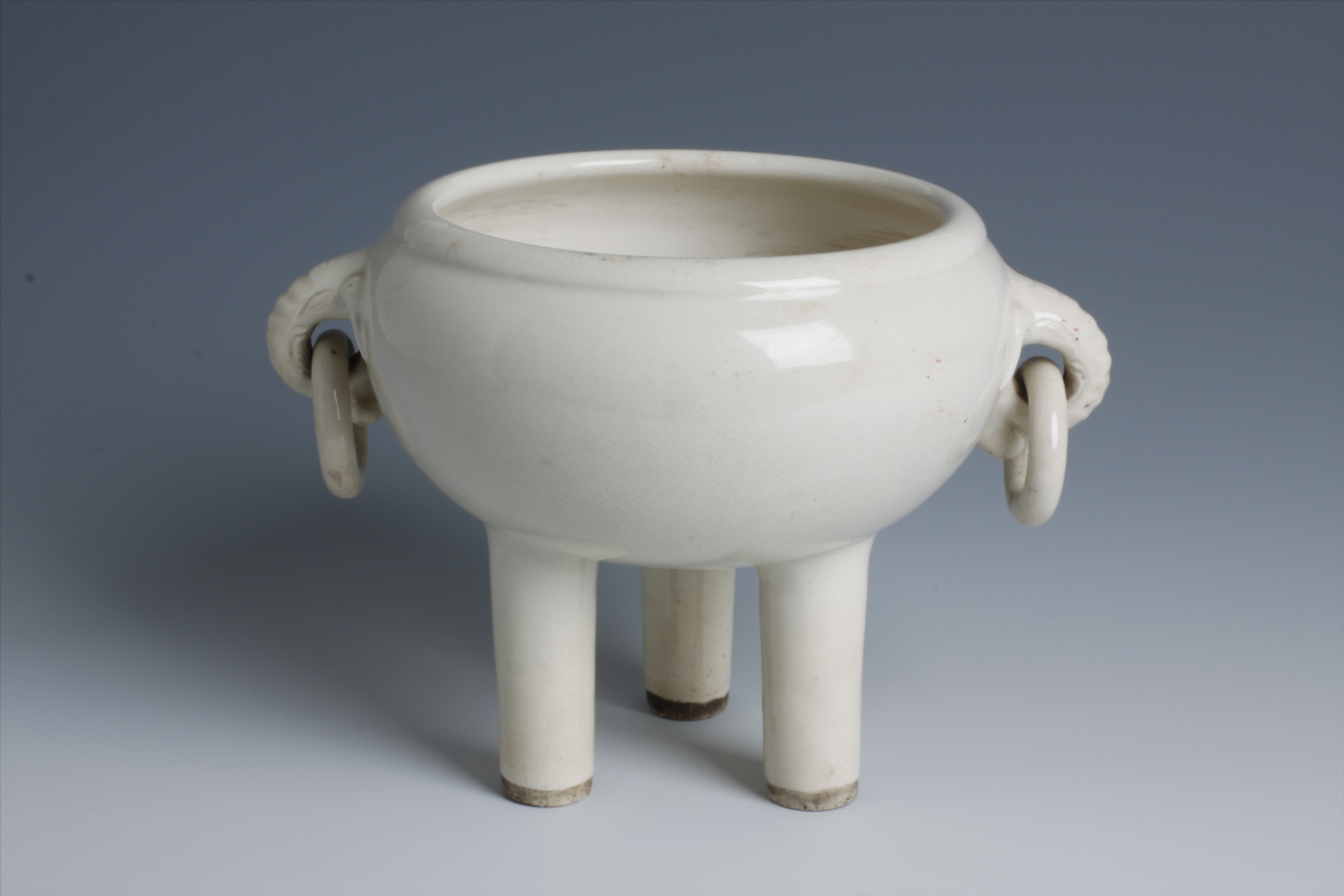 该尊双环耳三足炉质地坚硬,造型精美,是清漳窑米色白瓷的经典作品。