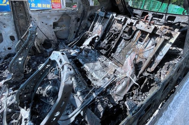 车内被烧得只剩下铁架