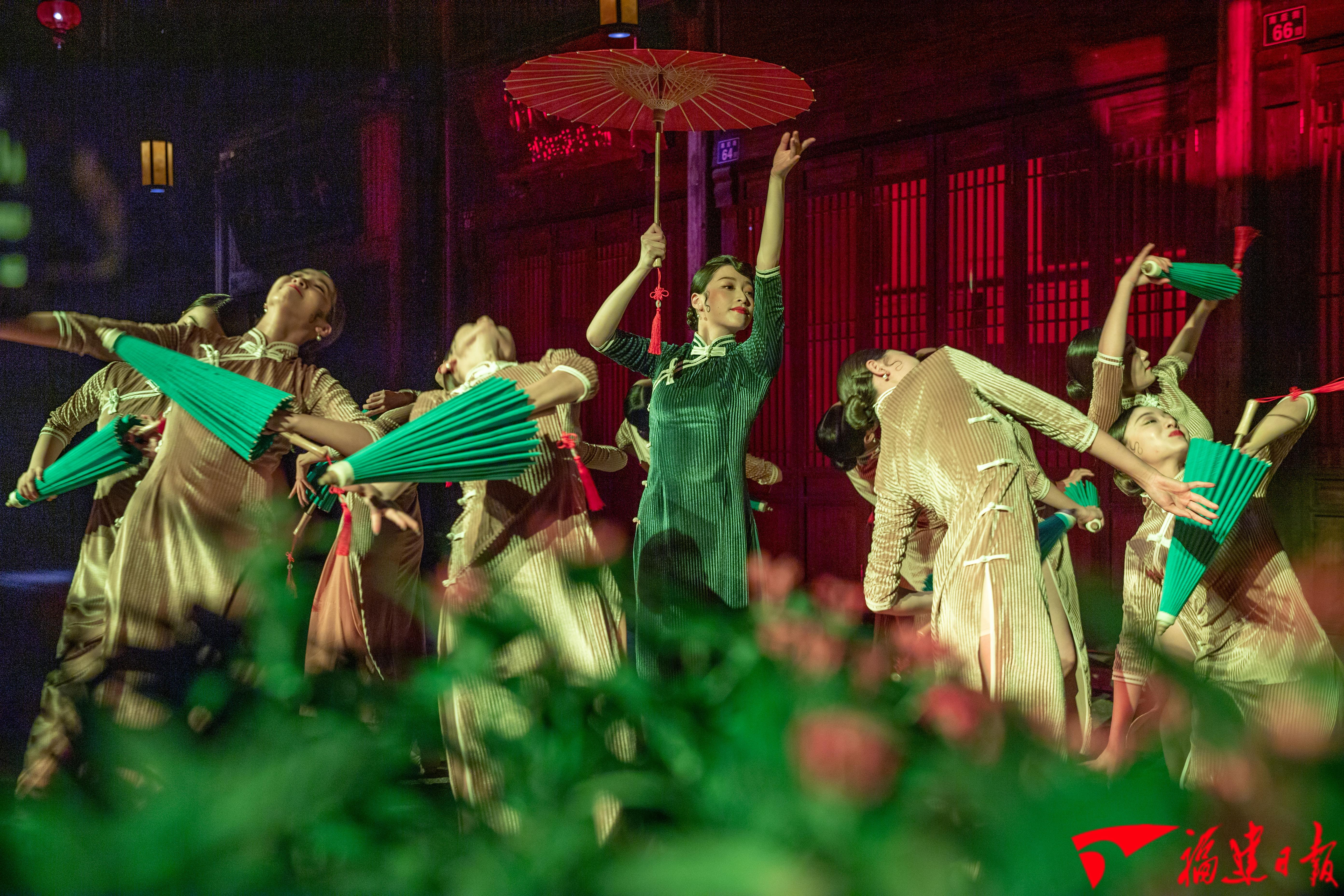 “让我们穿过历史的牌坊,跨入时空的大门,在传承发扬创新发展的今天,感受灵感与创造的源泉,体验福州古典与现代完美和谐的新标杆……”沉浸式演出在一场光影秀中拉开序幕,伴随着主持人声情并茂的解说,观众有序步入南后街牌坊,开始了一场特殊的文化体验之旅。该演出是第44届世界遗产大会活动的重要组成部分,采用声光电等多媒体技术,用朗诵、音乐、光影、舞蹈、戏曲、非遗展演等形式,介绍王审知、林则徐、沈葆桢、严复、林觉民、冰心等福州历史人物,还原古代里坊制度,重现明清社会闽都民俗、文化生活场景和商业发展氛围。