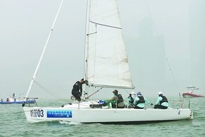 混合团体J80级是福建省大学生帆船竞赛的传统优势项目,包括东道主山东在内的10支代表队对这枚金牌展开角逐。到第5个比赛日,福建和山东两队的鏖战进入到白热化阶段。在最后一个比赛日,在各赛队抵达码头时天降大雨,10点半放晴之后,组委会与裁判组综合考虑安全因素和赛事安排,并没有发出决胜轮的起航信号。由舵手刘志翔和船员范俊可、曾威、艾炜杰、龙娜沙组成福建队最终仅以1分之差,遗憾地获得亚军。