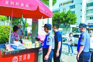 ▲城管部门对占道经营的早餐摊点进行宣传教育。 (夏海滨摄)