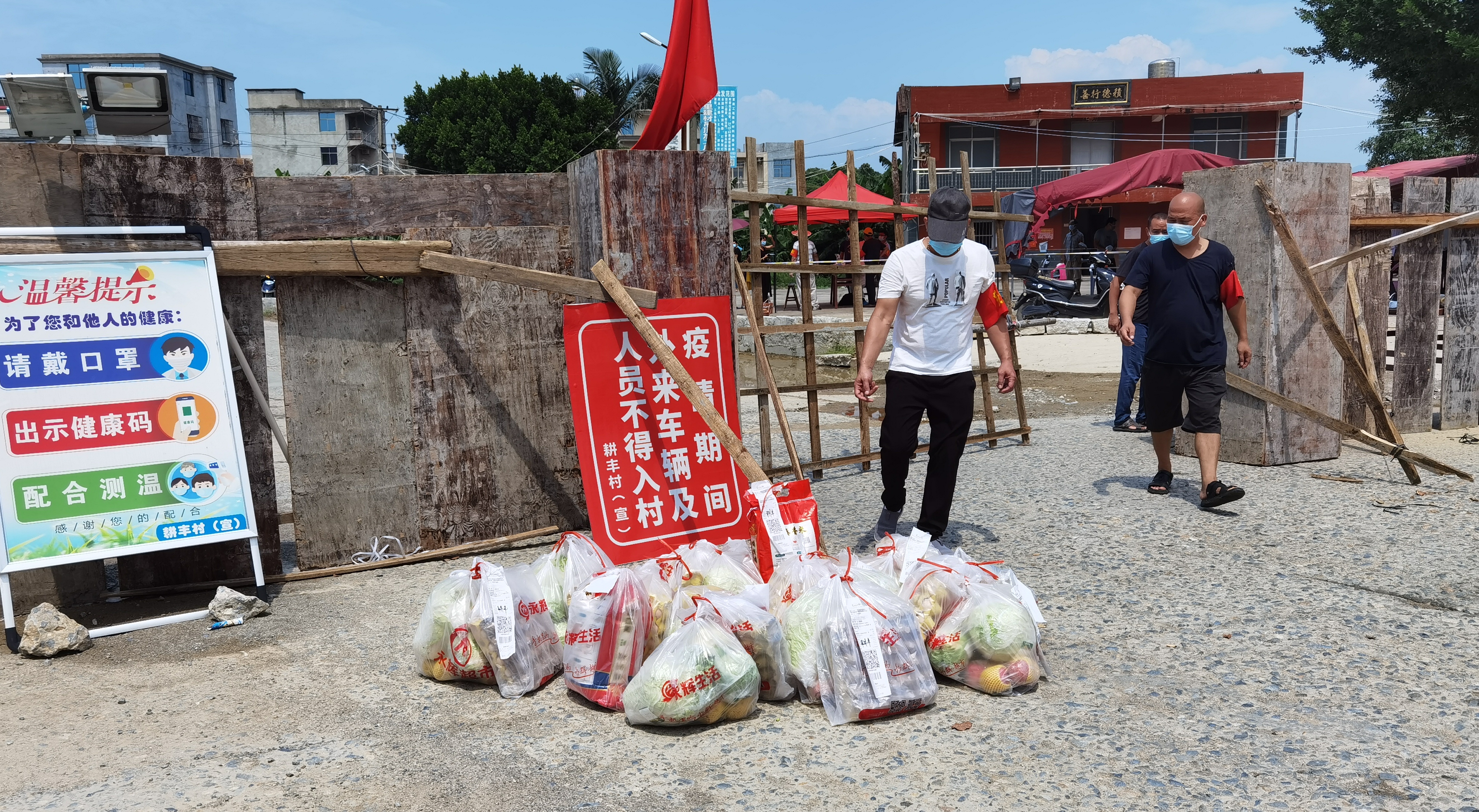 16日,永辉超市枫亭店收到村干部的订单共计120份。昨日早上临出发前,店里员工又将自己预订的也一起放进配送车。“虽然同处疫情风险地区,但和村里相比,我们在镇上,离物资更近,要把好的先给他们。”陈永凯说。