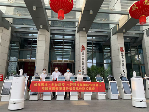 献礼国庆!祖国华诞,七好科技集团于国庆当天捐赠安溪县价值1500万元的防疫机器人助力政府防疫防控。七好科技集团 供图