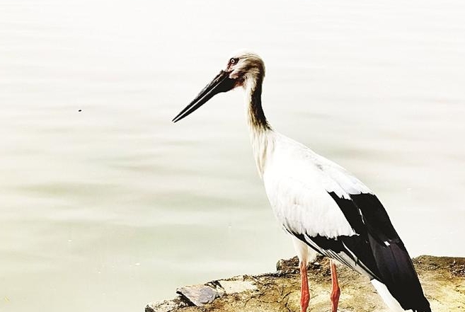 当时,马建华在江滨公园江畔,发现岸边驻足一只美丽的大鸟。“旁边游客都过来围观。这只鸟非常漂亮,白身黑尾,红色长脚,展翼大概有一米。我起初以为是鹤。”马建华说,因为从未见过此类禽鸟,便拿起手机拍照。“它一点儿也不怕生,飞到岸边时就有人在旁边,大家好奇,拿起手机近距离拍照,它‘落落大方’,淡定地让人拍照。”有人连忙上网查资料,经比对认为它是东方白鹳。