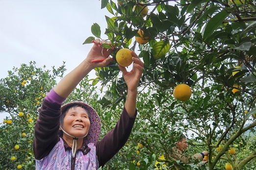 一都镇村民正在采摘脐橙。
