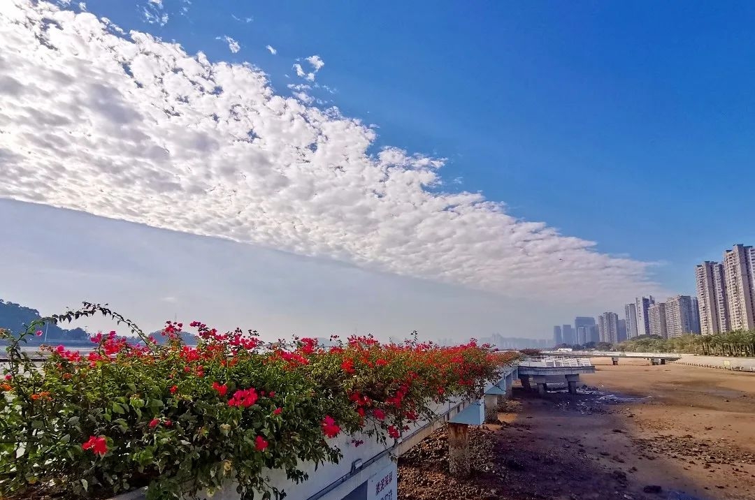 气象专家张伟解释,这种天气现象比较少见但并不“诡异”。晴空部分是絮状高积云,云层部分是蔽光性的高积云,两种不同性质的云团在冷暖气团的挤压下,云边界被“切”得十分整齐,就像天被分割成两半,有人称之为“阴阳天”。