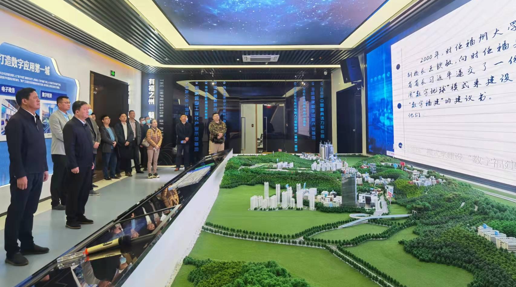 在福州软件园展厅,仙游县党政代表团一行认真听取鼓楼区领导介绍软件园建设和发展情况,福州软件园经过20多年深耕,从一张平面蓝图变成一座现代化生态新城。两地领导通过视频一起重温了习近平总书记当年在福建工作期间,高度重视福州软件园的建设发展,亲自推动设立、亲自擘画蓝图、亲自指导建设的历史,现场学习习近平总书记关于科技创新、“数字中国”“数字福建”建设等重要论述。