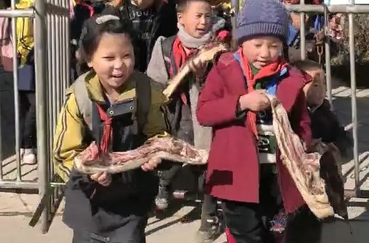 每个孩子都会拿腊肉到学校